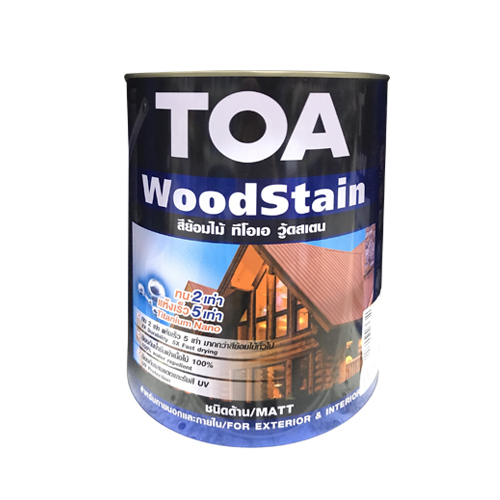 สีย้อมไม้ ทีโอเอ วู้ดสเตน ชนิดด้าน ผลิตจากแอลคีด เรซิน มีส่วนผสมของสารเติมแต่งชนิดพิเศษ และแม่สีชนิดโปร่งแสง ช่วยป้องกันเนื้อไม้จากรังสียูวีได้ดีเยี่ยม ฟิล์มสีมีความยืดหยุ่นสูง ป้องกันน้ำซึมได้ดี มีส่วนผสมของสารป้องกันเชื้อราและแมลงกัดกินไม้ ทาง่าย ขึ้นฟิล์มไว ให้ฟิล์มสีด้านดูเรียบเนียน เนื้อสีซึมลึกเข้าสู่เนื้อไม้ ช่วยให้ยึดเกาะกับเนื้อไม้ได้ดีเยี่ยม