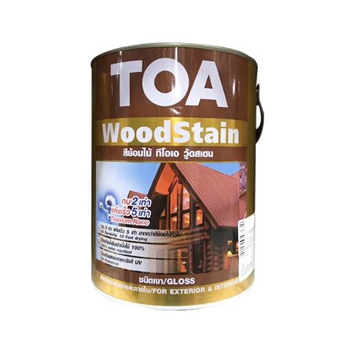สีย้อมไม้ ทีโอเอ วู้ดสเตน ชนิดเงา ผลิตจากแอลคีด เรซิน มีส่วนผสมของสารเติมแต่งชนิดพิเศษ และแม่สีชนิดโปร่งแสง ช่วยป้องกันเนื้อไม้จากรังสียูวีได้ดีเยี่ยม ฟิล์มสีมีความยืดหยุ่นสูง ป้องกันน้ำซึมได้ดี มีส่วนผสมของสารป้องกันเชื้อราและแมลงกัดกินไม้ ทาง่าย ขึ้นฟิล์มไว ให้ฟิล์มสีที่มีความเงาสูง เนื้อสีซึมลึกเข้าสู่เนื้อไม้ ช่วยให้ยึดเกาะกับเนื้อไม้ได้ดีเยี่ยม