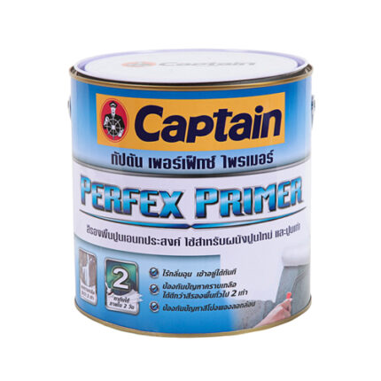 สีรองพื้นปูน Perfex Primer CAPTAIN 5GLใช้ดั้งกับผนังปูนใหม่และปูนเก่า ไร้กลิ่นฉุนเข้าอยู่ได้ทันที ป้องกันปัญหาคราบเกลือได้ดีกว่าสีรองพื้นทั่วไปถึง 2 เท่าป้องกันปัญหาสีโป่งพองลอกล่อน
