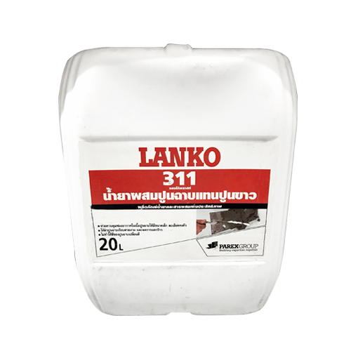 LANKO พลาส 311 20ลิตรแลงโก้ 311 เป็นน้ำยาผสมปูนฉาบแทนปูนขาว โดยน้ำยาจะช่วยควบคุมฟองอากาศในเนื้อปูนฉาบให้มีขนาดเล็ก ละเอียดคงตัว และอยู่ในปริมาณที่เหมาะสม เพื่อเพิ่มความเหนียวลื่น ทำให้ฉาบง่ายไม่แตกลายงา และไม่ทำให้สีของปูนฉาบที่แห้งแล้วเปลี่ยน เหมาะสำหรับงานฉาบทั่วไป