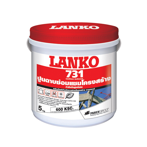 LANKO 731 5กก. LANKOปูนฉาบซ่อมแซมโครงสร้าง ฉาบได้ขนาดความหนา 5-50 มม. กำลังรับแรงอัดสูง รับน้ำหนักได้สูงถึง 600 KSC ตามมาตรฐาน ปลอดภัย ปราศจากสารพิษ สารระเหยต่ำ ใช้งานกลางแจ้งได้