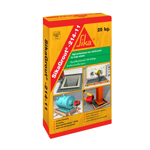 SIKA Grout 214-11 TH 25KG.เป็นซีเมนต์มอร์ต้าชนิดพิเศษผสมเสร็จ ไม่หดตัว และไหลปรับระดับผิวหน้าได้เอง ได้รับการพัฒนา เพิ่มระยะเวลาการทำงานเพื่อให้เหมาะสมกับอุณหภูมิ ในสภาพแวดล้อมของท้องถิ่น